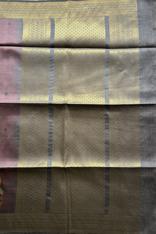 Chanderi Silk Saree Dusty Mauve color Elegantly Paired with a Gold Zari border