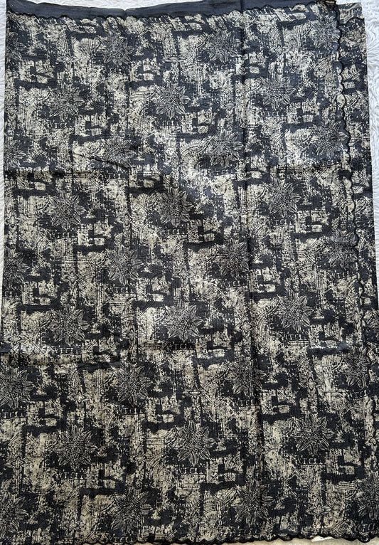 Pure Tussar Silk Saree Black Color Elegantly Paired with a Scallop Border.
