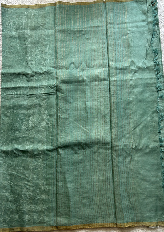 Semi Tussar Tissue Saree Light Green Colored complemented with a Zari Border.