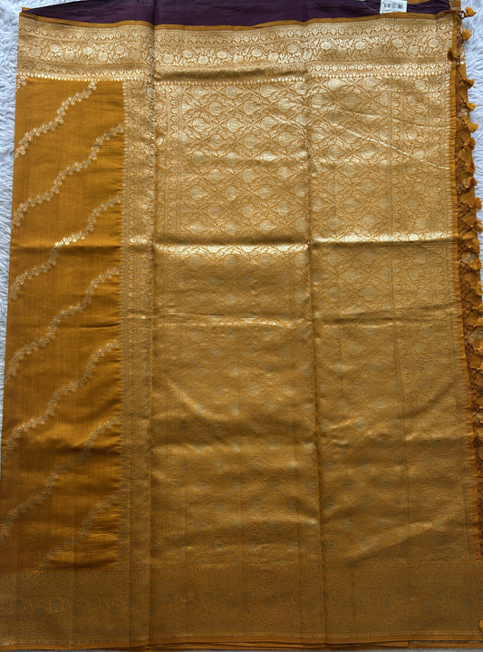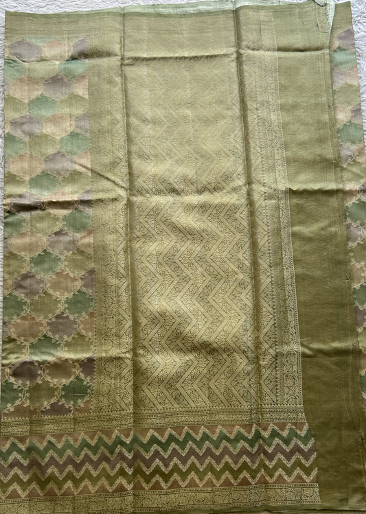 Banarasi Tissue Kora Allover Saree Olive Colored Complemented with a Scallop Border.