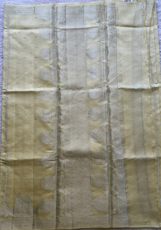 Chiniya Silk Saree Very Light Yellow Colored Exquisite with a Zari Border.