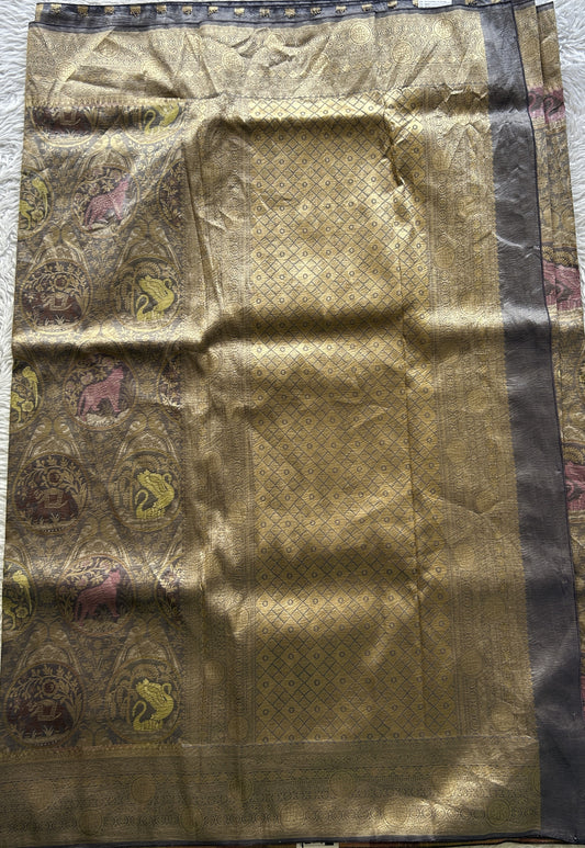Tissue Organza Saree Elephant Gray Colored Elegantly Paired with a Zari Border.