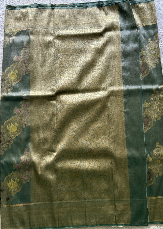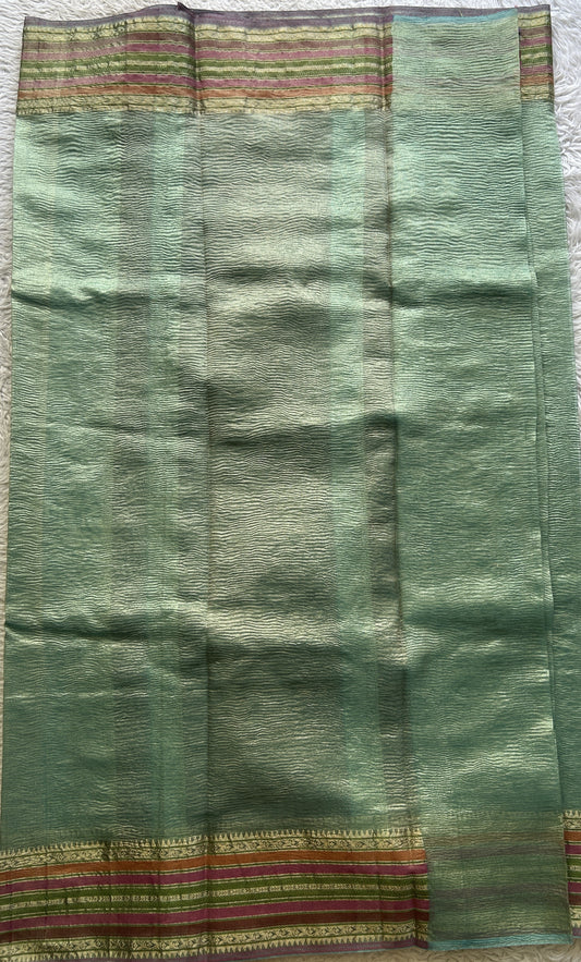 Tissue Organza Saree Green Colored Elegantly Paired with a Zari Border.