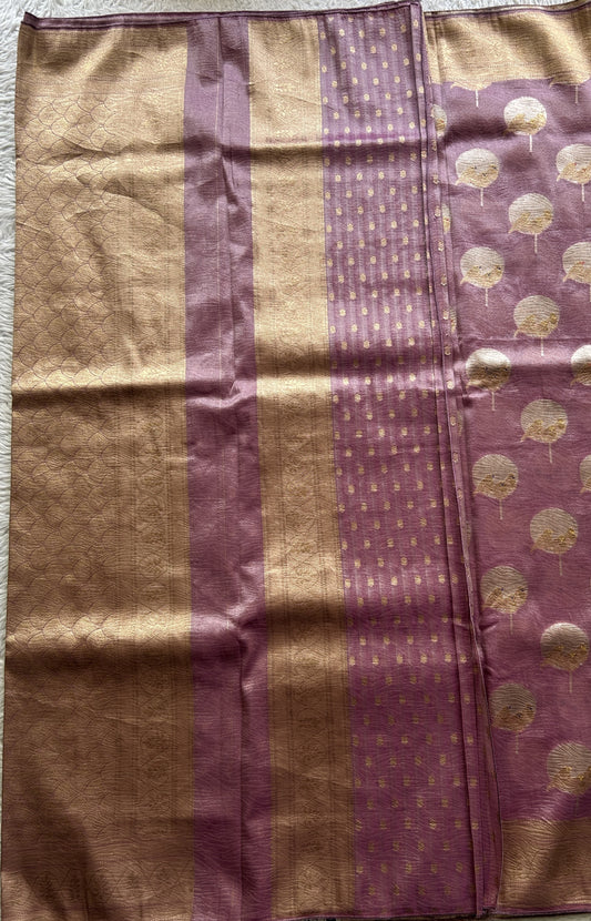 Tissue Organza Saree Lavender Colored Complemented with a Zari Border.
