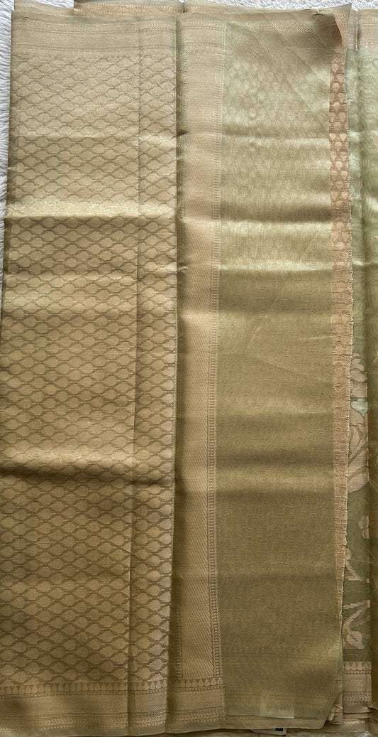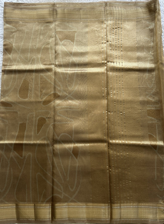 Tissue Organza Saree Gold Colored Elegantly Paired with a Zari Border.