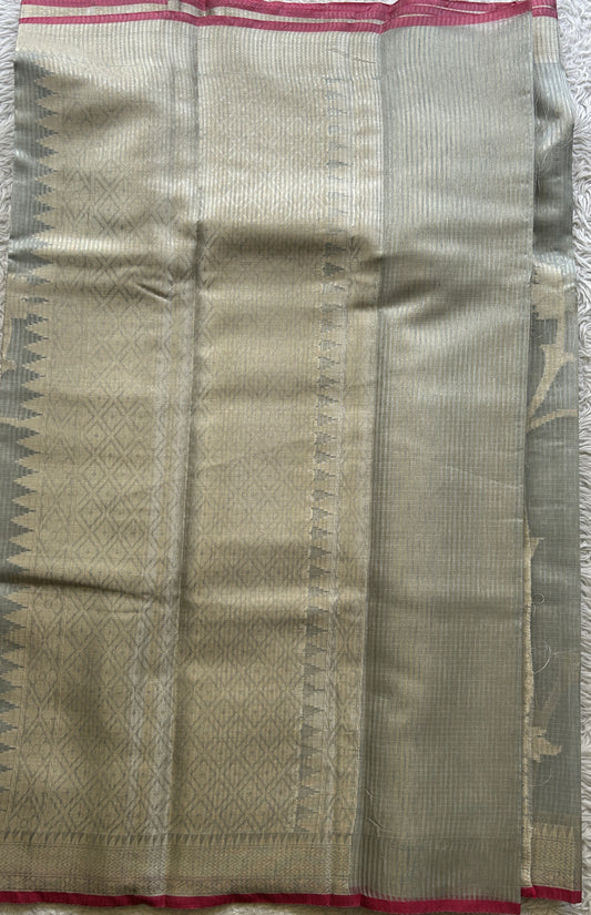 Tissue Organza Saree Ash Colored Elegantly Paired with a Zari Border.
