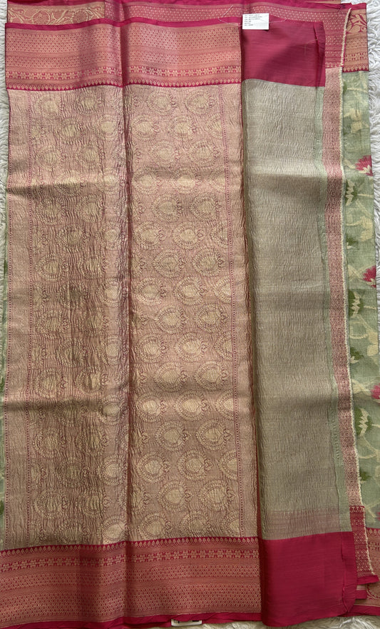 Tissue Organza Saree Very Light Green Colored Elegantly Paired with a Zari Border.