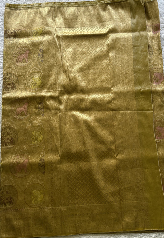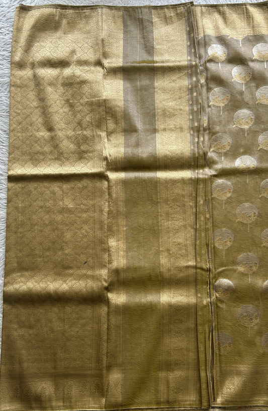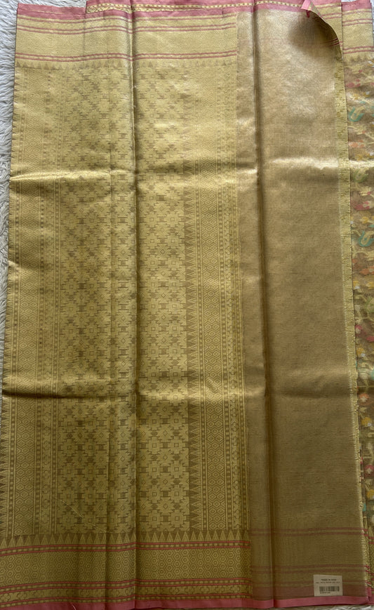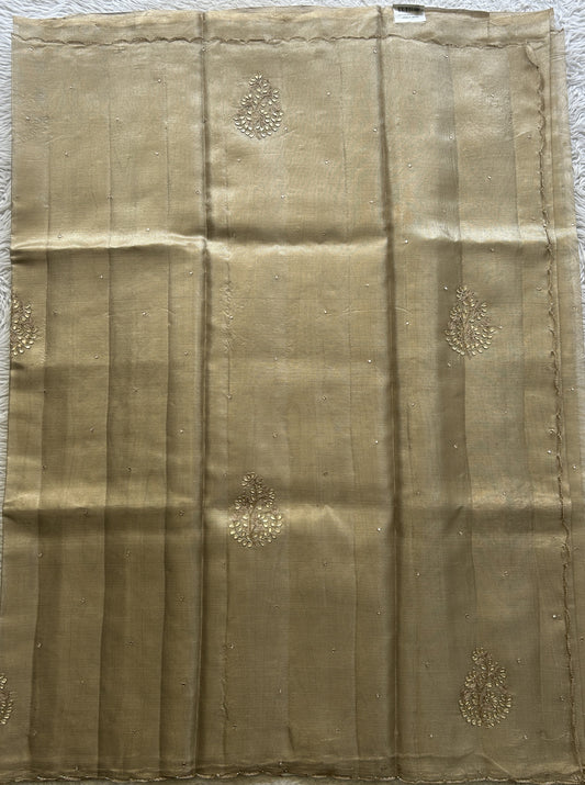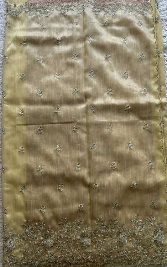 Tissue Organza Saree Gold Colored Elegantly Paired with a Zari Border.