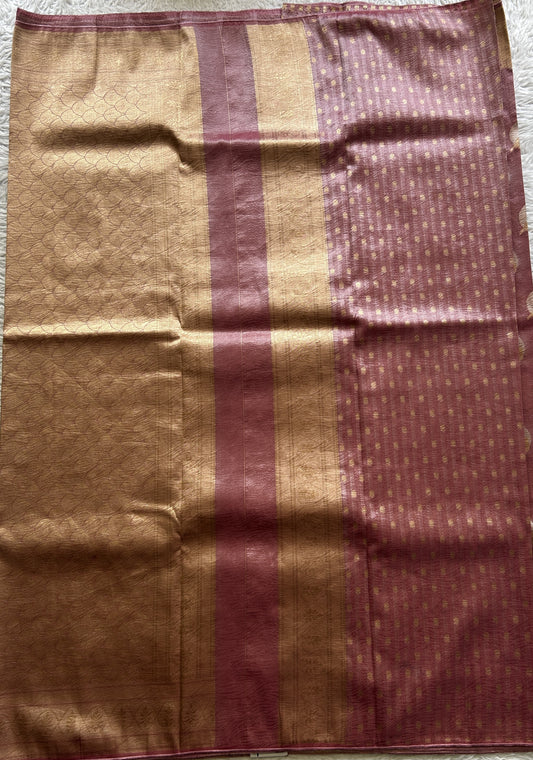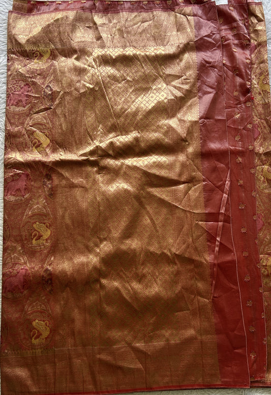 Tissue Organza Saree Dark Peach Colored Complemented with a Zari Border.