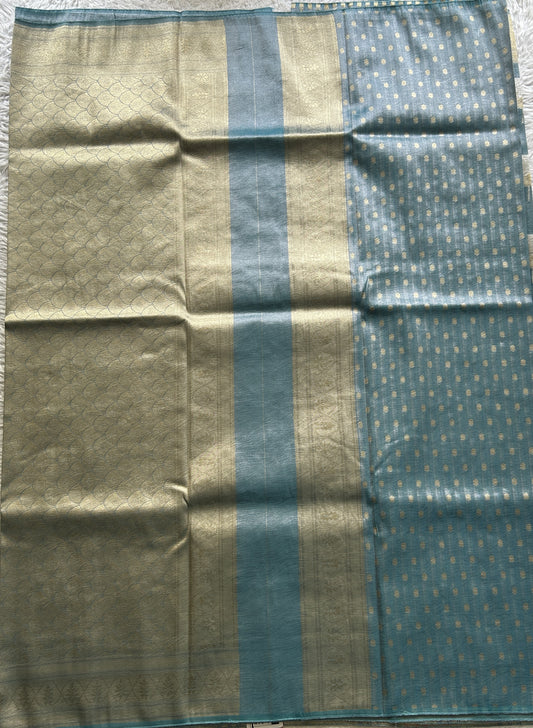 Tissue Organza Saree Sea Blue Colored Elegantly Paired with a Zari Border.