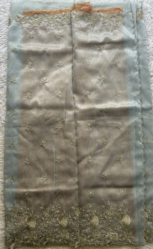 Tissue Organza Saree Very Light Blue Colored Complemented with a Embroidery Border.