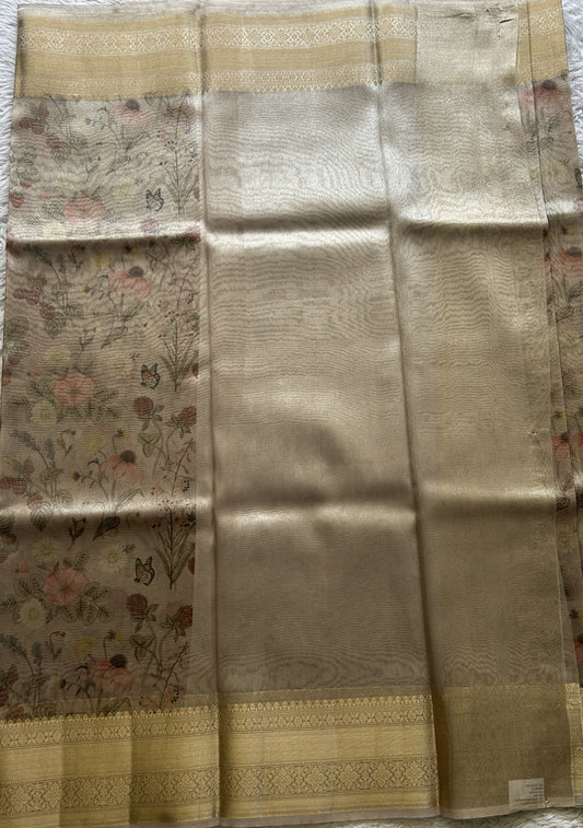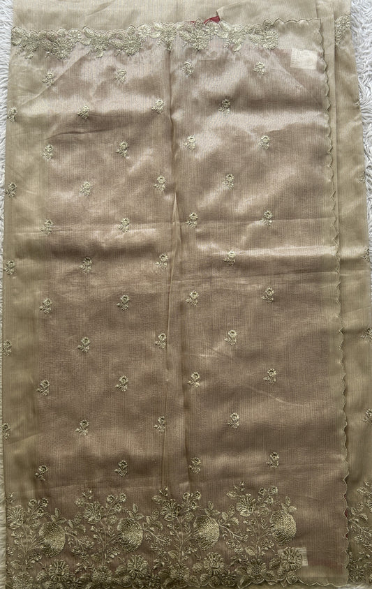 Tissue Organza Saree Beige Colored Elegantly Paired with a Zari Border.