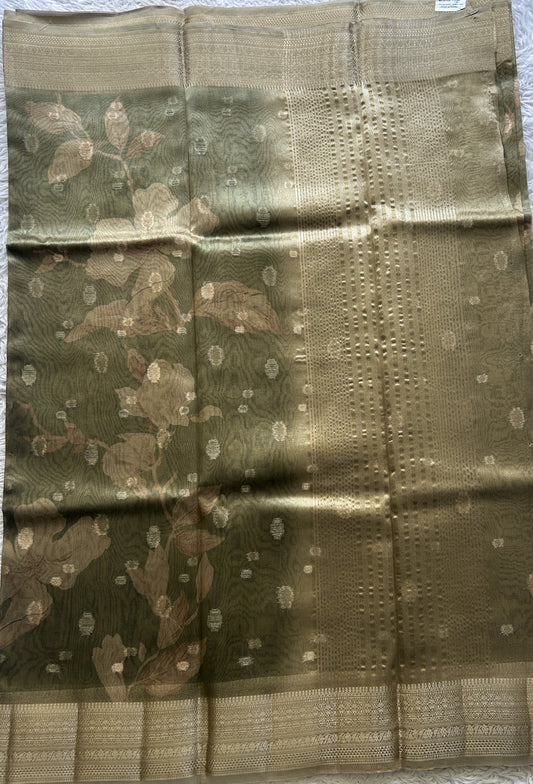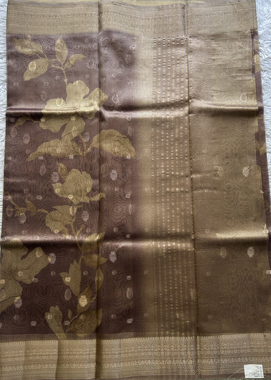 Tissue Organza Saree Brown Colored Elegantly Paired with a Zari Border.