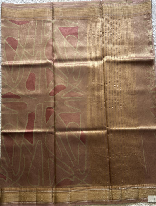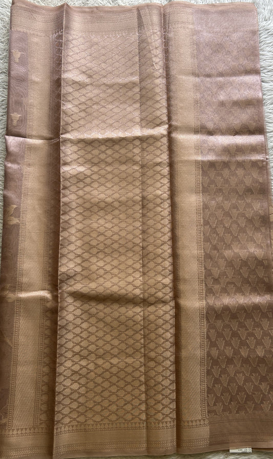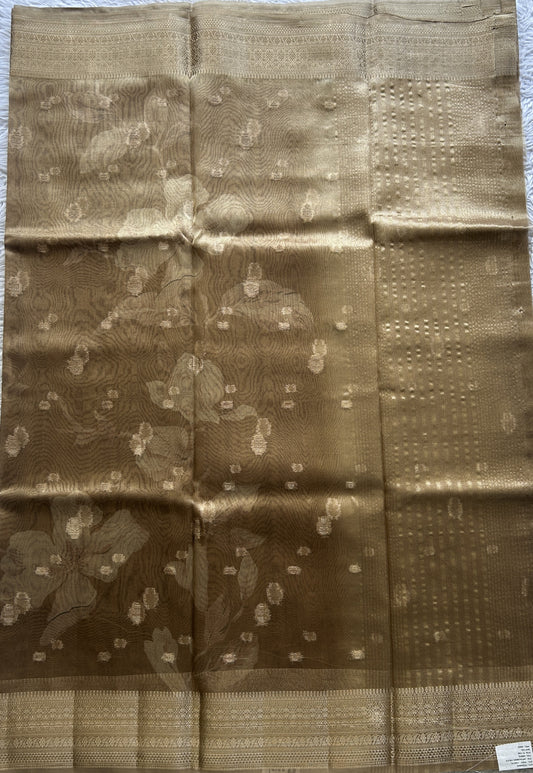 Tissue Organza Saree Light Brown Colored Elegantly Paired with a Zari Border.