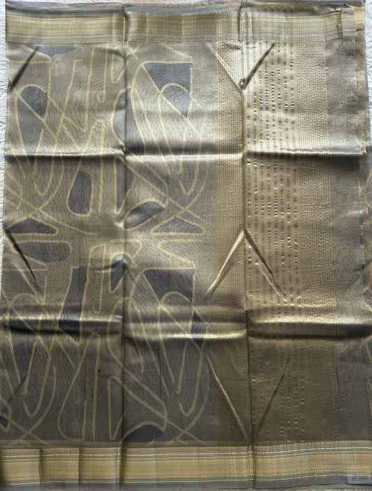 Tissue Organza Saree Gray Colored Elegantly Paired with a Zari Border.