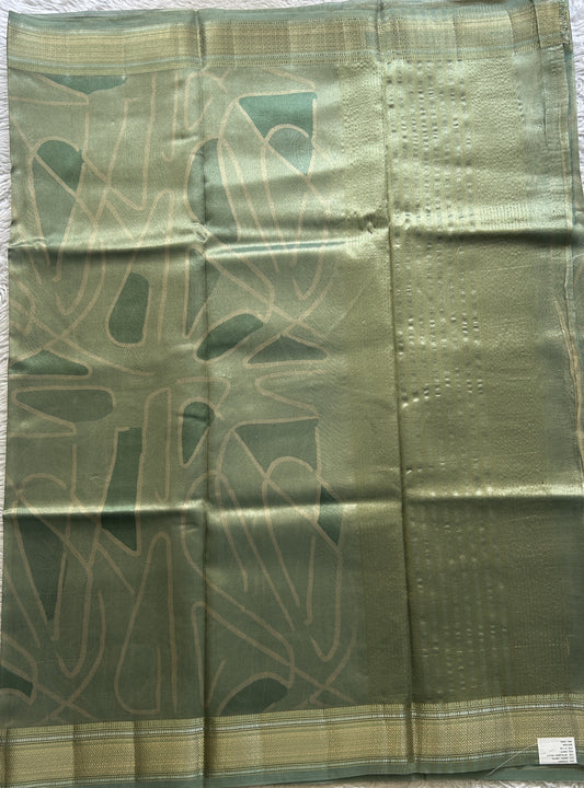 Tissue Organza Saree Very Light Green Colored Elegantly Paired with a Zari Border.