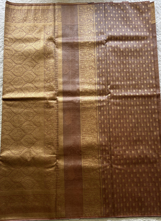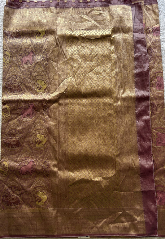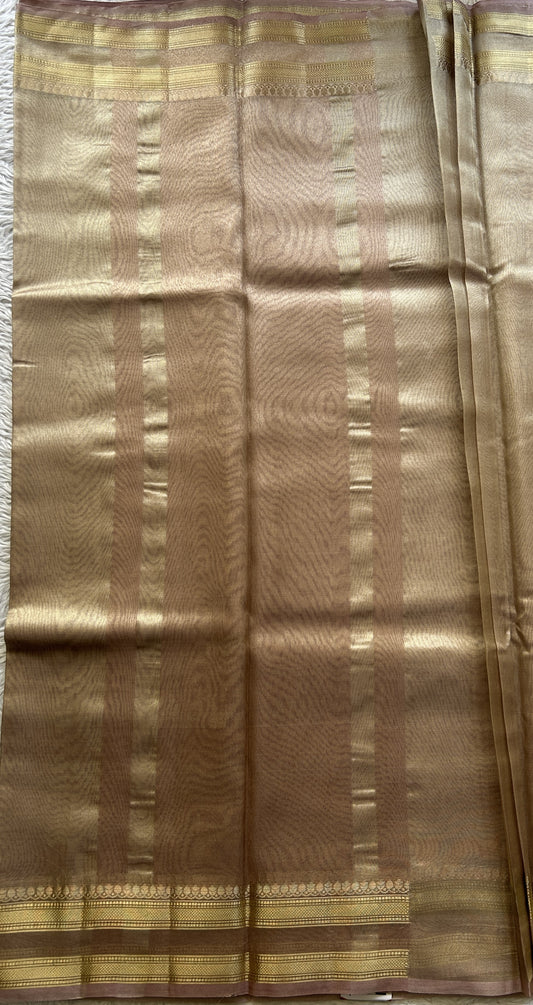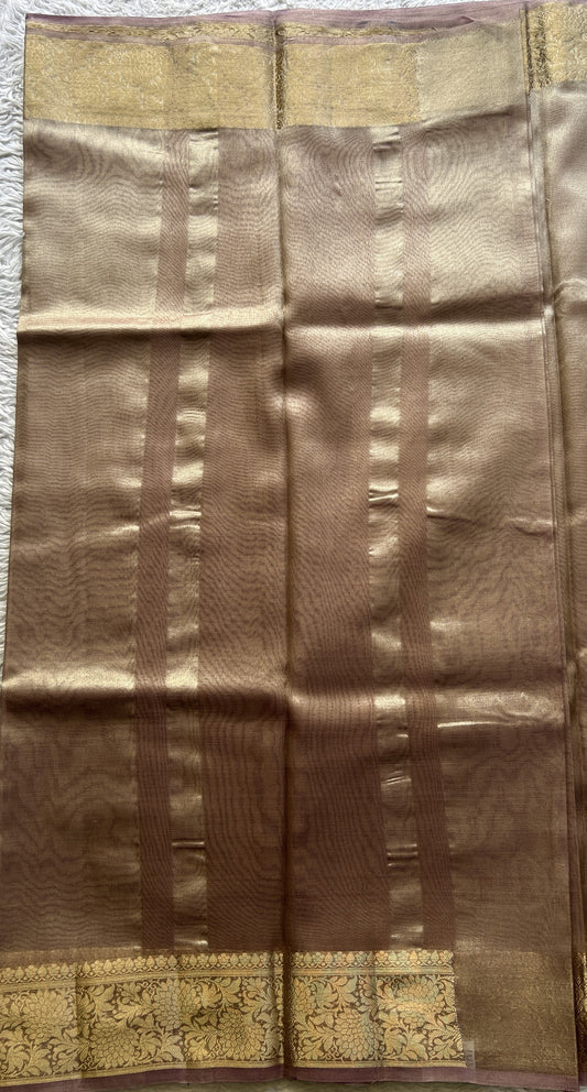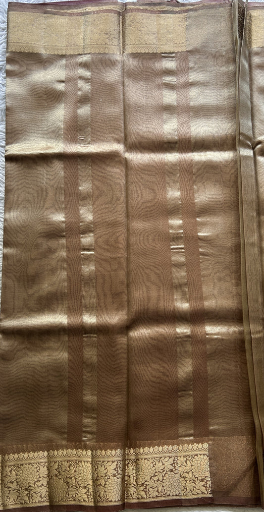 Tissue Organza Saree Chocolate Colored Complemented with a Zari Border.