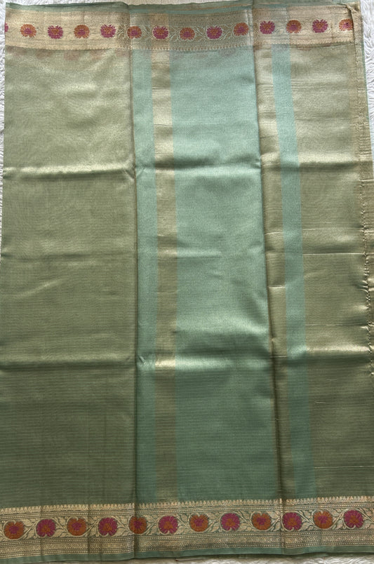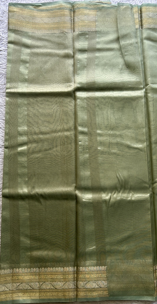 Tissue Organza Saree Very Light Green Colored Complemented with a Zari Border.