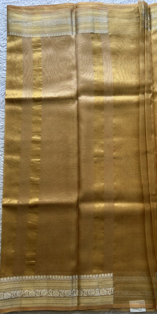 Tissue Organza Saree Yellow Colored Complemented with a Zari Border.
