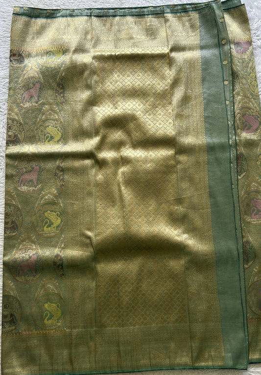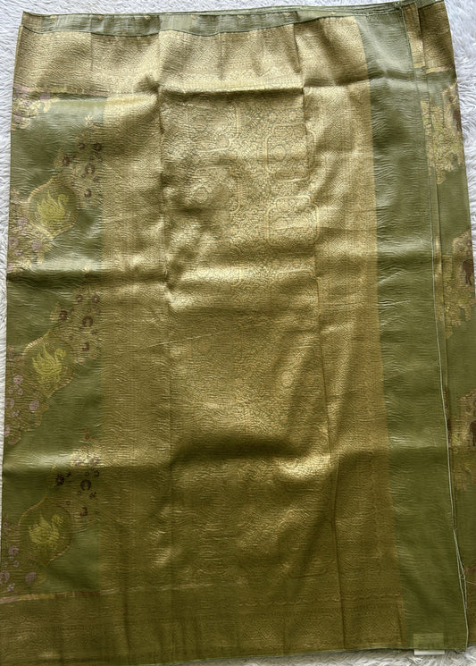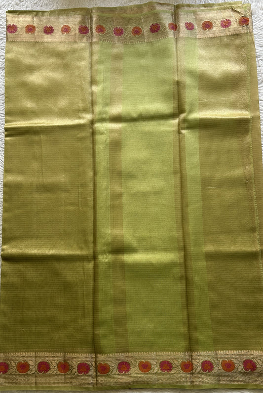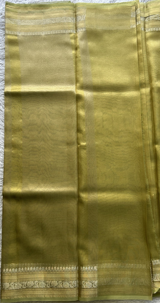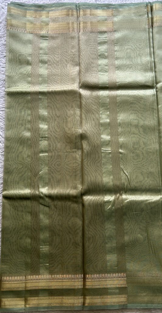 Tissue Organza Saree Pista Green Colored Complemented with a Zari Border.