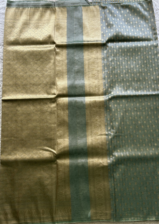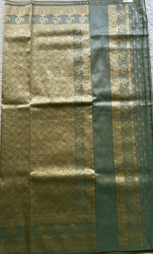 Tissue Organza Allover Saree Sea Green Colored Complemented with a Zari Border.