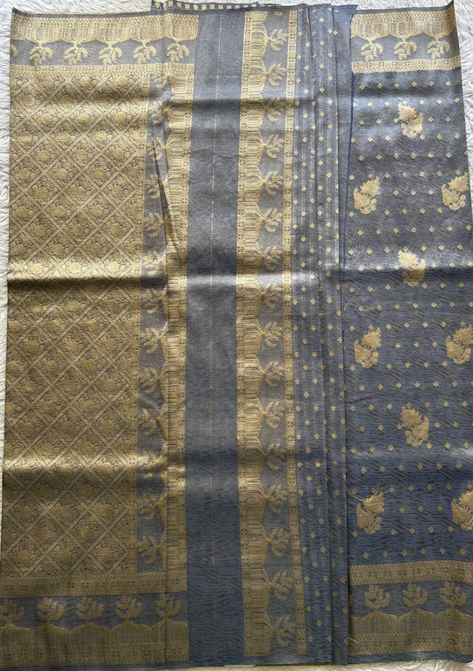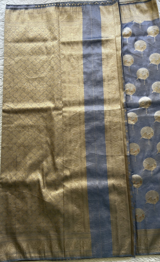 Tissue Organza Saree Slate Gray Colored Complemented with a Zari Border.