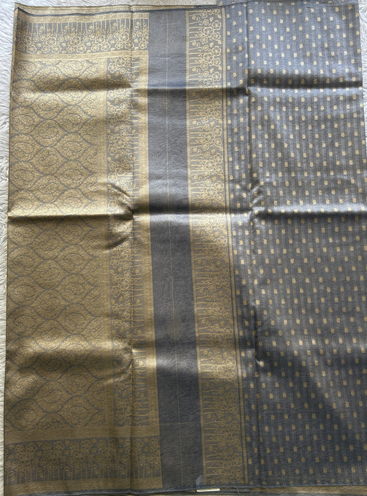 Tissue Organza Saree Dark Gray Colored Complemented with a Zari Border.