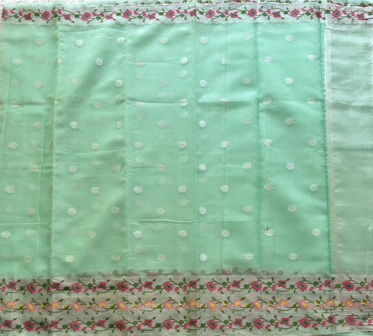 Tissue Kota Saree Mint Green Colored Elegantly Paired with a Tissue Border
