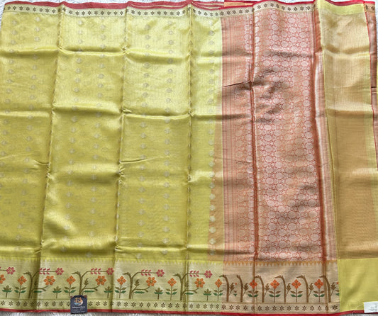 Tissue Kota Saree Yellow Colored Elegantly Paired with a Tissue Border
