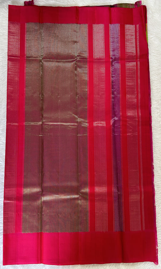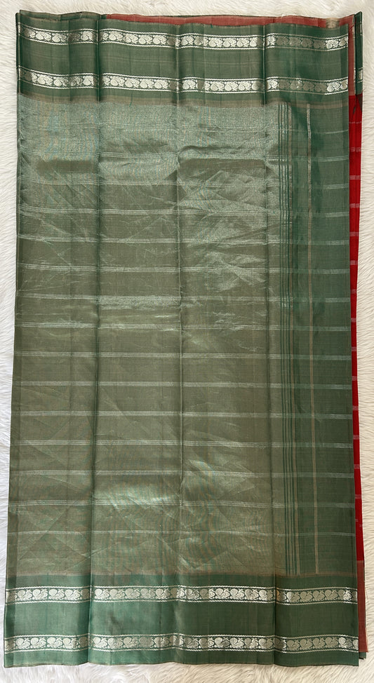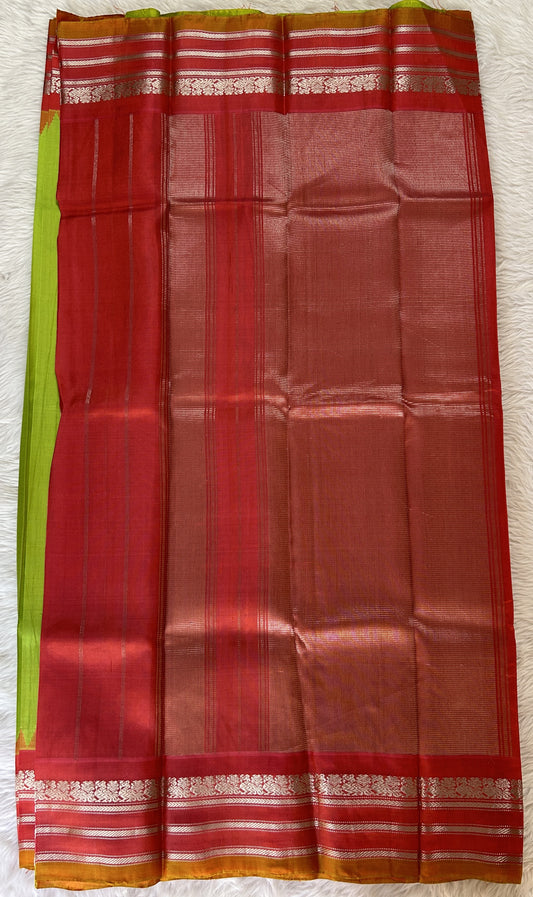Venkatagiri Pattu Saree Lincoln Colored Complemented With a Pattu Emerald Green Color Kanchi Border