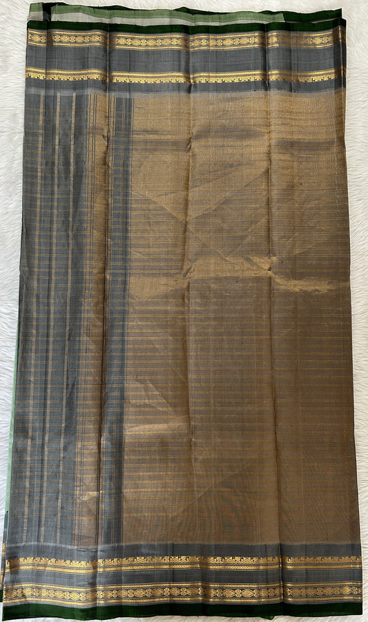 Gadwal Pattu Saree Cream Colored with Parrot Green Vertical lines Saree Complemented With a Pattu Parrot Green Color Kanchi Gap Border