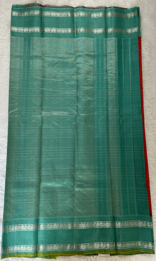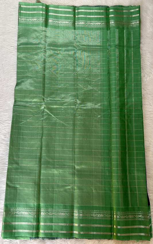Venkatagiri Pattu Saree Sea Green Colored Complemented With a Pattu Light Peach Kanchi Border