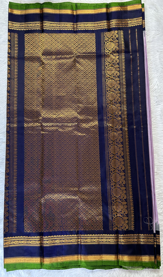 Gadwal Pattu Saree Pastel Lavender Colored Checks Saree Complemented With a Pattu Dark Carbon Blue Color Kanchi Gap Border