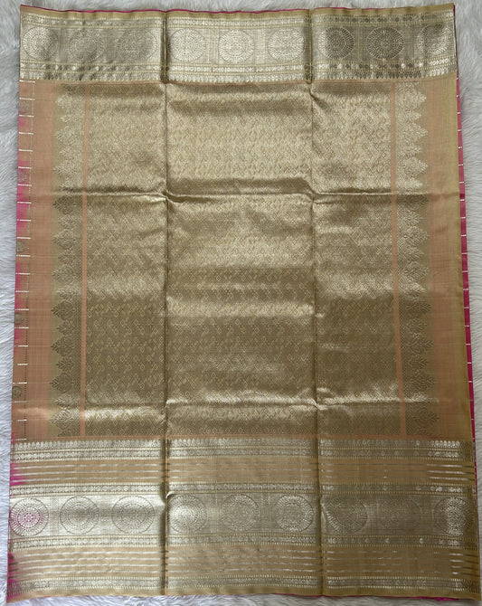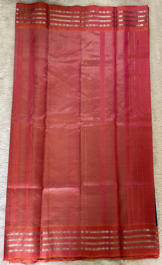 Gadwal Pattu Saree Pink Colored Complemented With a Pattu Dark Blue Green Color Kanchi Gap Border