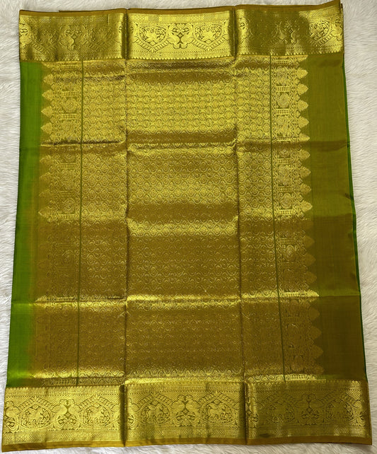 Venkatagiri Pattu Saree Parrot Green Colored Complemented With a Pattu Yellowish Green Kanchi Border