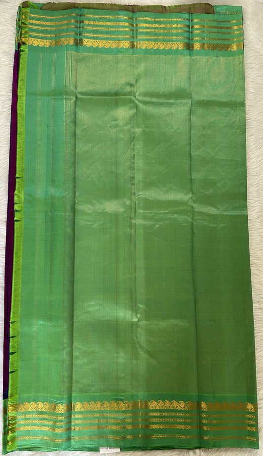 Gadwal Pattu Saree Purple Colored Complemented With a Pattu Emerald Green Color Kanchi Border