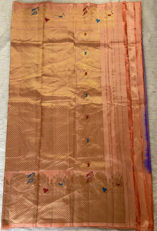 Gadwal Pattu Saree Lavender Colored Saree Complemented With a Pattu Peach Color Kanchi Border
