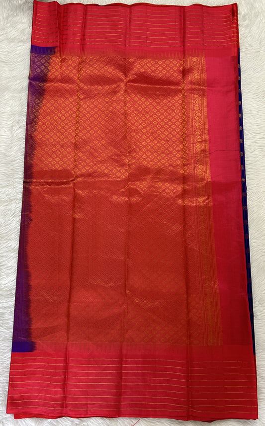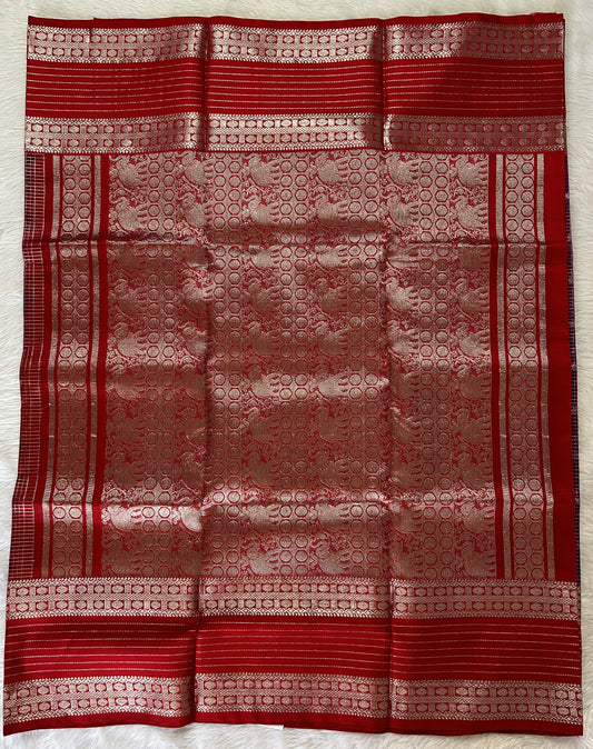 Venkatagiri Pattu Saree Purple Colored Complemented With a Pattu Red Silver Kanchi Border