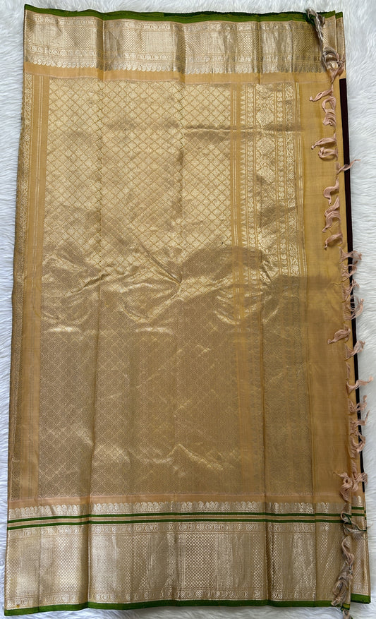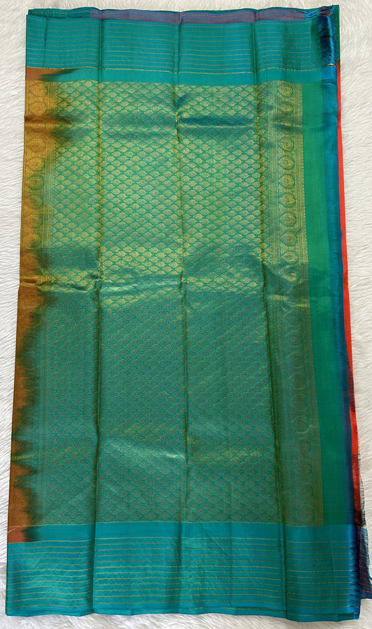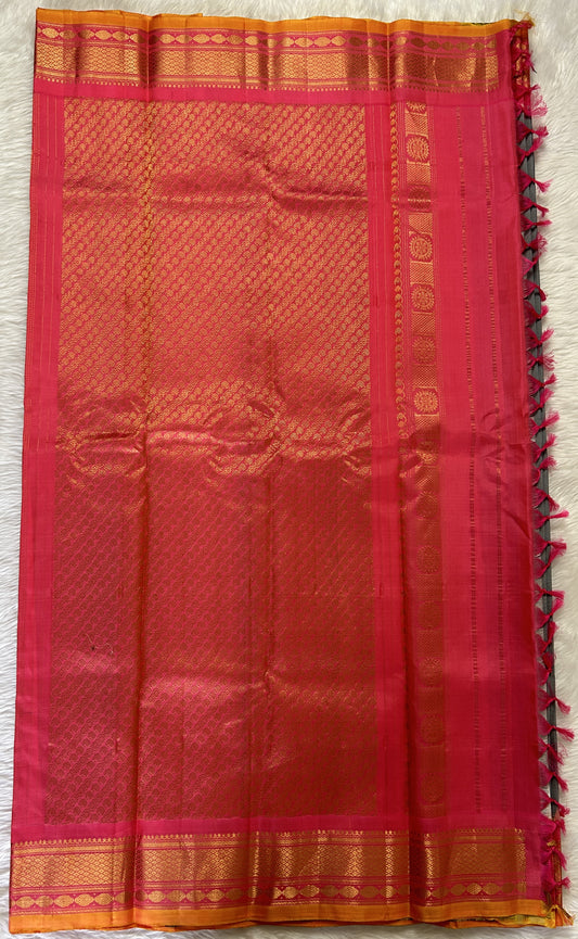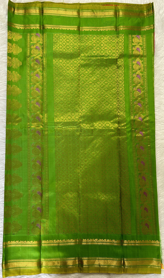 Gadwal Pattu Saree Orange Colored Complemented With a Pattu Green Color Kanchi Gap Border
