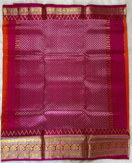 Venkatagiri Pattu Saree Orange Colored Complemented With a Pattu Pink Color Kanchi Border