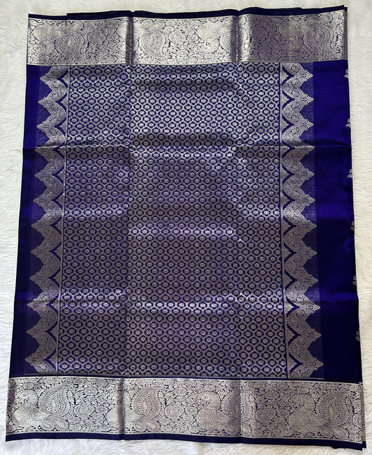 Venkatagiri Pattu Saree Indigo Blue Colored Complemented With a Pattu Silver Kanchi Border