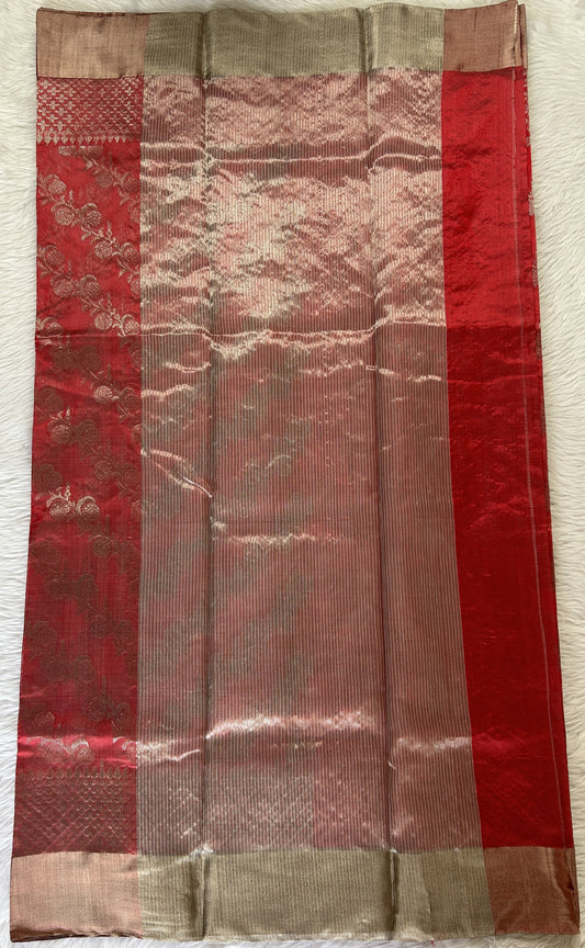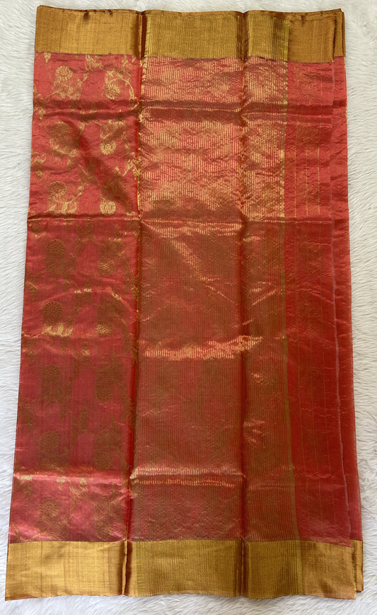 Chanderi Silk Saree Brick colored Complemented with a Gold Zari border