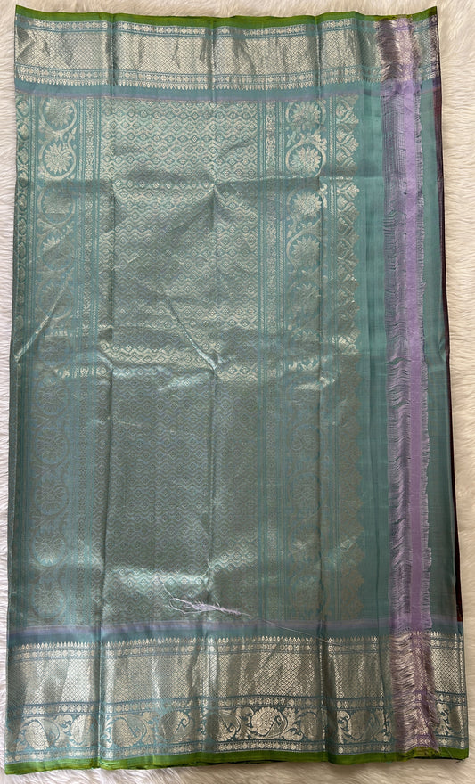 Venkatagiri Pattu Saree Peacock Blue Colored Complemented With a Pattu Silver Kanchi Border
