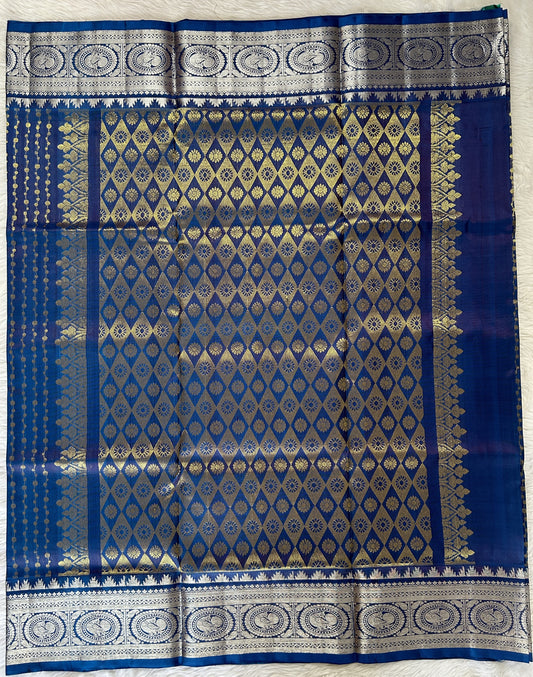 Gadwal Pattu Saree Royal Blue Colored Complemented With a Pattu Kanchi Border