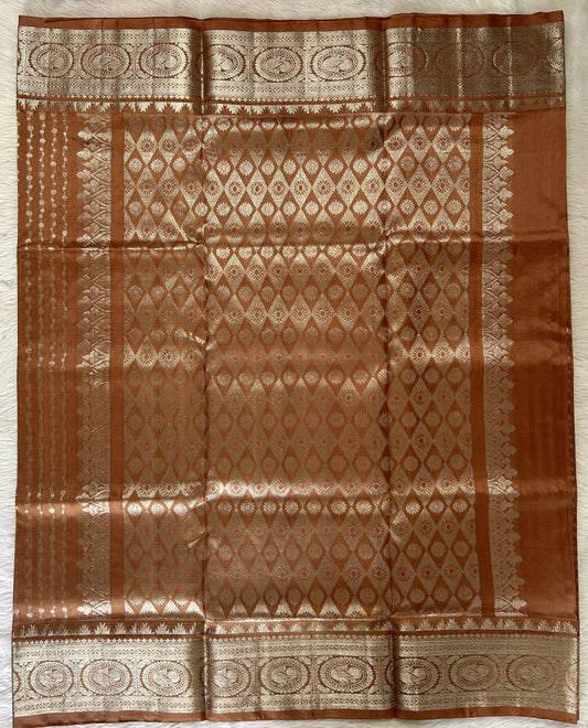 Venkatagiri Pattu Saree Pastel Brown Colored Complemented With a Pattu Silver Kanchi Border
