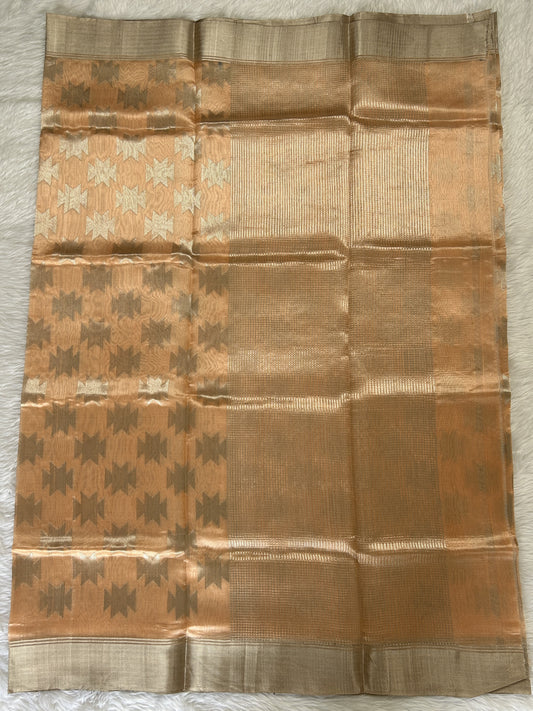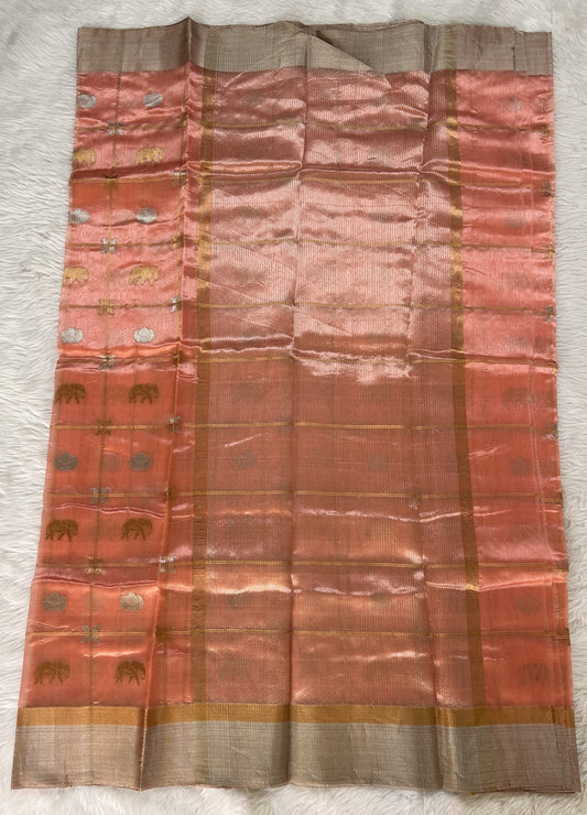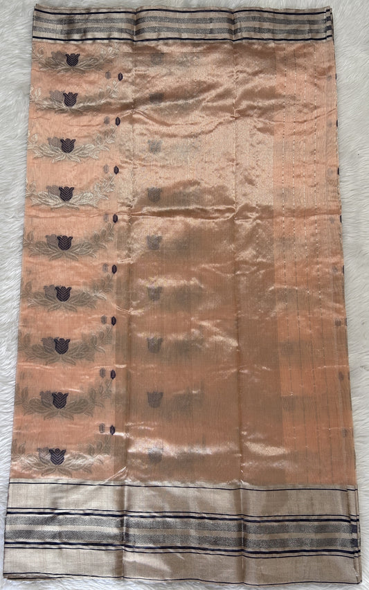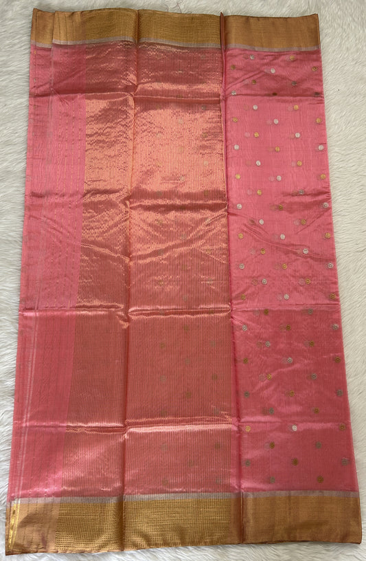 Chanderi Silk Saree Light Peach Colored Complemented with a Gold Zari weaving Border