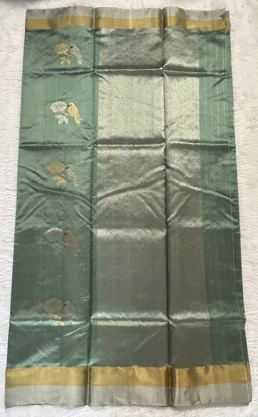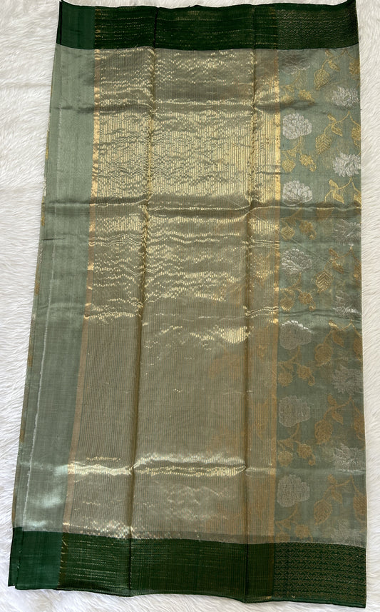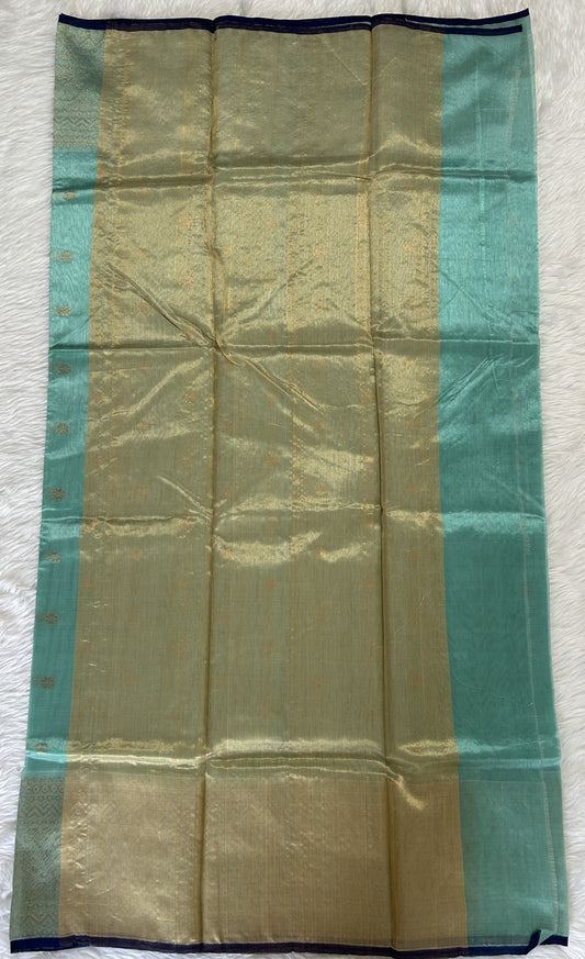 Chanderi Silk Saree Cool Green Colored Complemented with a Gold & Silver Zari border