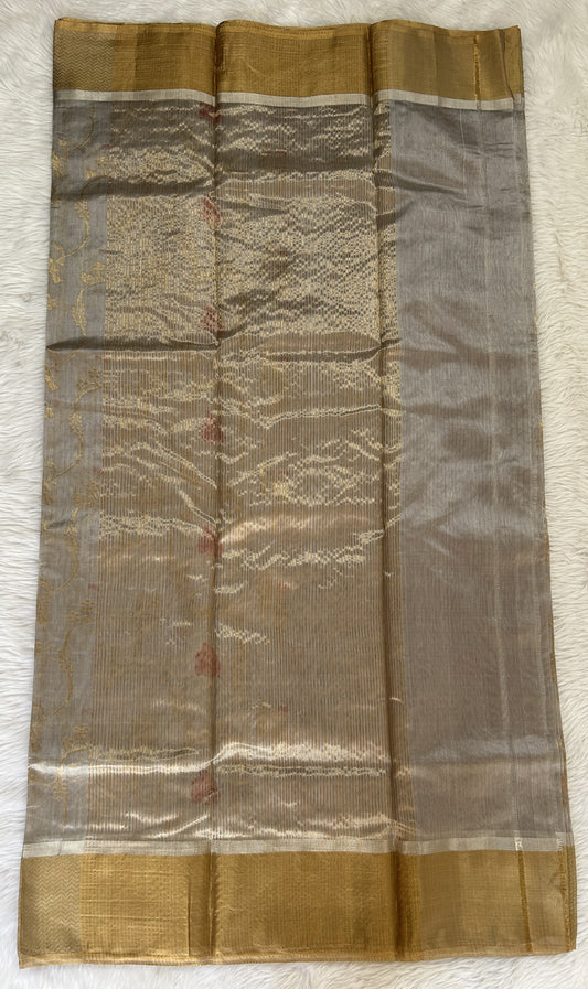 Chanderi Silk Saree Grey Colored Complemented with a Gold Zari Border