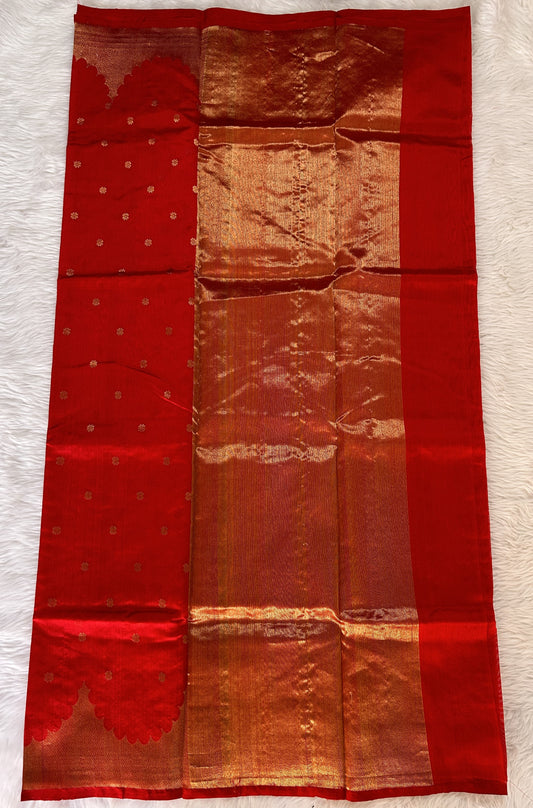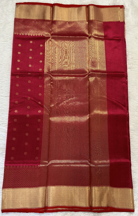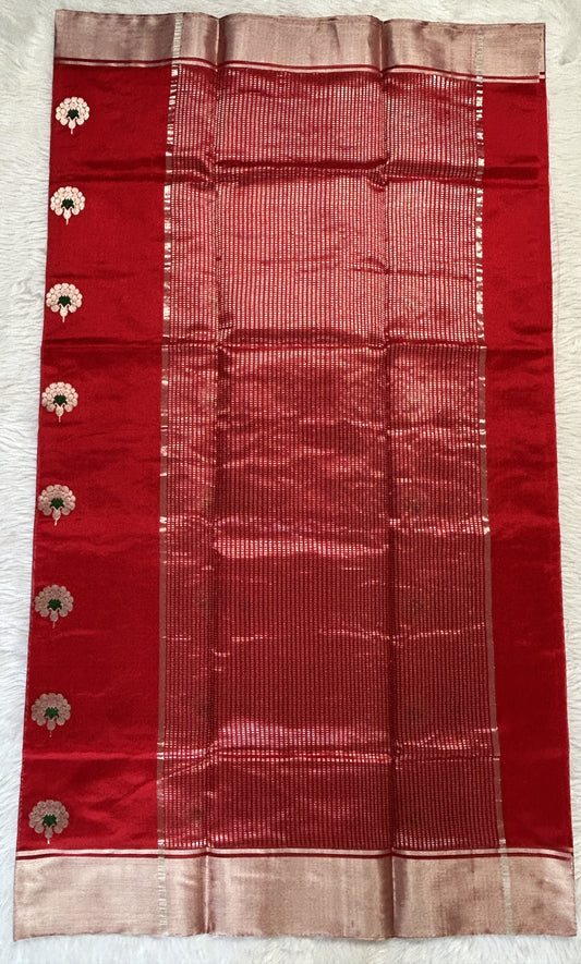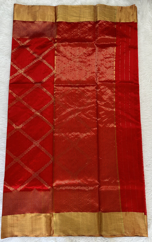 Chanderi Pattu Saree Red colored saree complemented with a Gold Zari Border