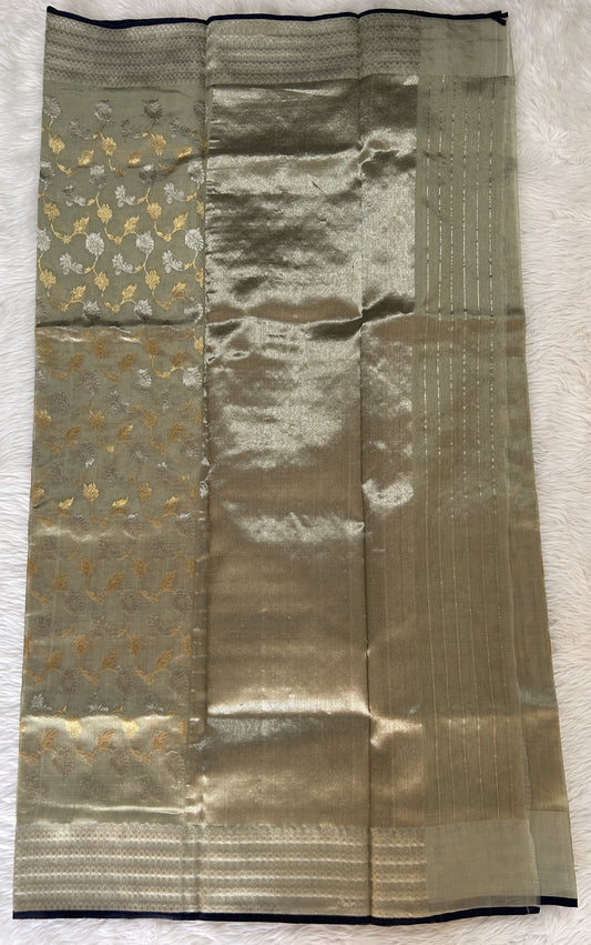 Chanderi Silk Saree Greenish Grey Colored Complemented with a Silver Zari Border